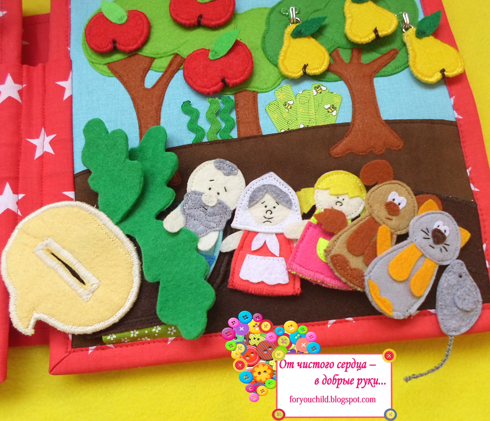"Ежик по лесу идет, ежик яблочко несет":) Яблоко на магните, можно перестегнуть с дерева на ежика: